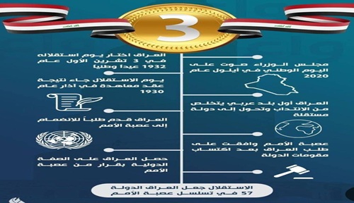 حيث يُجسد ذكرى استقلال العراق وانضمامه إلى عصبة الأمم عام 1932، ليكون بذلك أول بلد عربي ينال استقلاله.