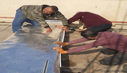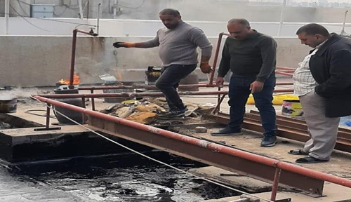 وشملت الحملة قلع كافة طبقات التسطيح القديمة واعادة الطلاء بالزفت واعادة فرش طبقة من التراب وتبديل كافة قطع الشتايكر المتضررة بمساحة ١٠٠ م٢ فضلا عن اعادة ملئ الفواصل بمادة الماستك مع معالجة منطقة التمدد عن طريق طلائها بمادة الزفت ومن ثم معالجتها بمادة الايزوكام والعمل لايزال مستمر لصيانة الماستك المتضرر في باقي مساحة السطح