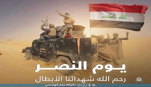 بمناسبة يوم النصر العظيم الذي سطّر فيه أبطال قواتنا المسلحة بكافة صنوفها أروع ملاحم البطولة والفداء بتحرير مدينة الموصل العزيزة من دنس عصابات داعش الإرهابية،